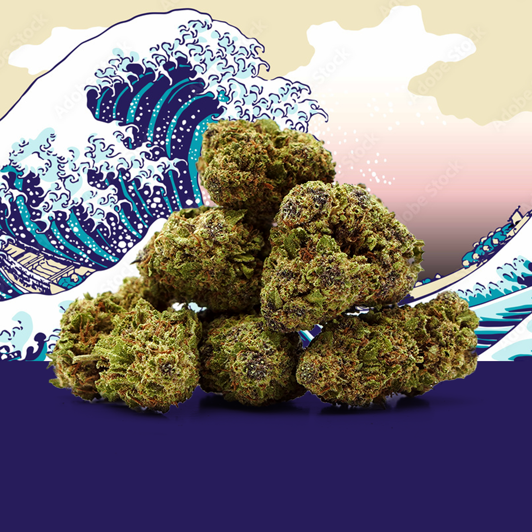 Visualmente, os seus botões densos em tons de verde profundo e azul gelado evocam um passeio matinal nas montanhas do Japão. Cultivada em estufa com precisão e sabedoria, a Blue Zushi oferece um equilíbrio perfeito entre o poder aromático e a doçura relaxante.